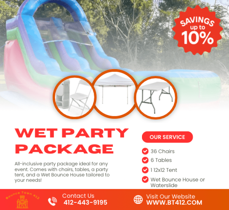 🌊 Wet Bounce House Party Package – $599.31 (ALL DAY RENTAL)